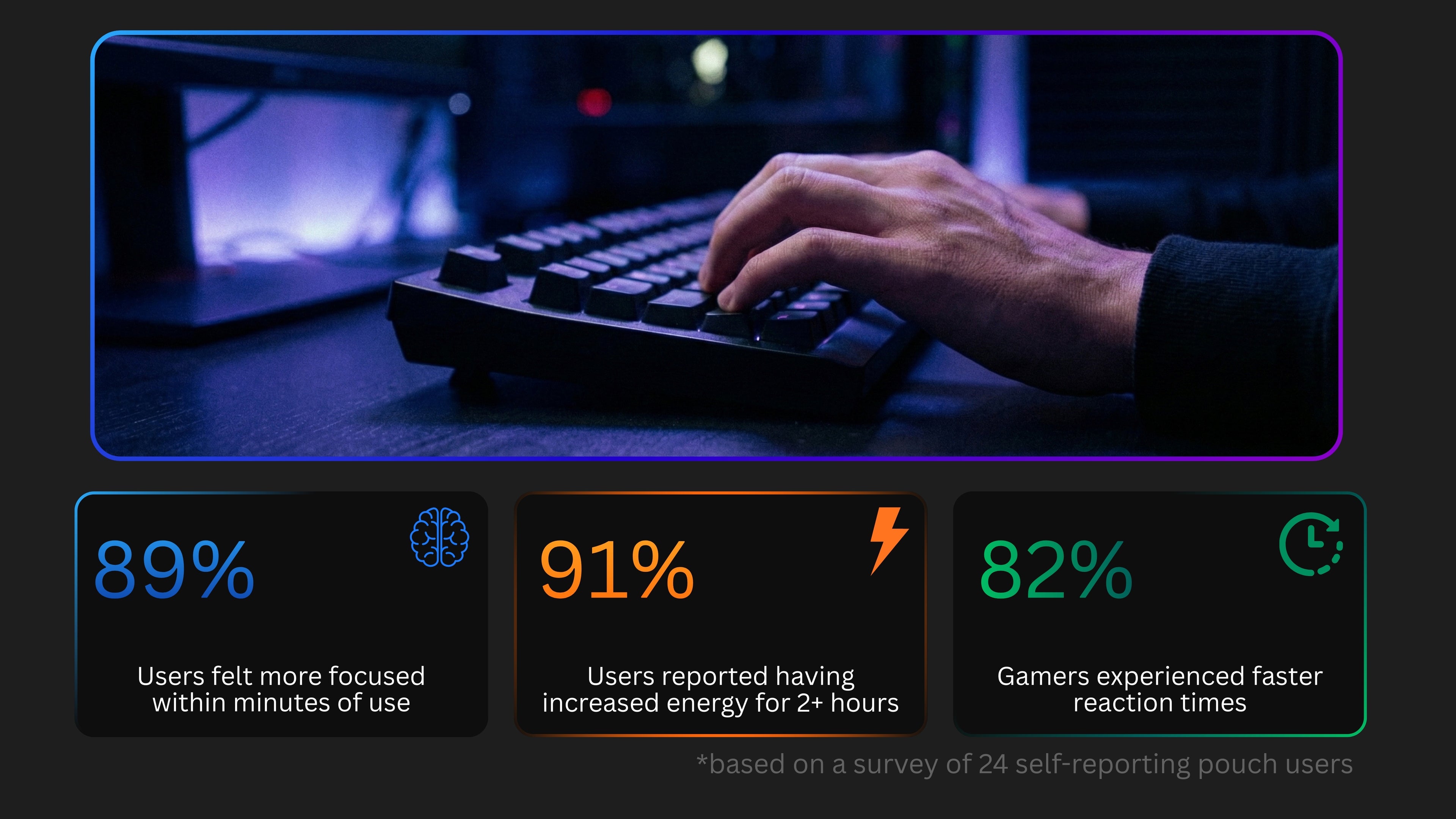 We’re building focus supplements designed for long sessions, high performance, and zero crash. So gamers can stay locked in and play at their best.